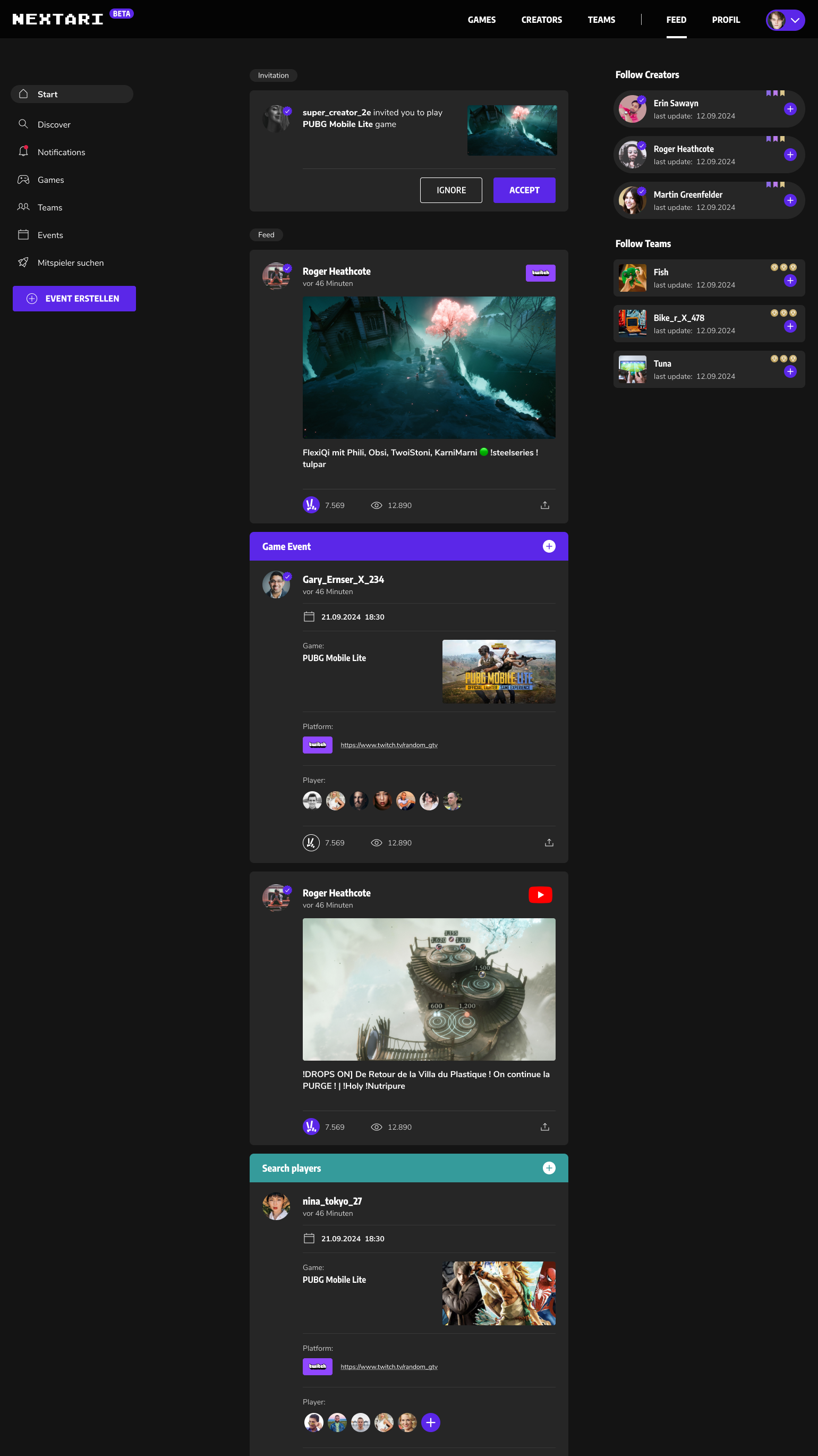 friends, events, and creator content in one place.
